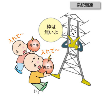 再エネを作っても、今の仕組みでは簡単に系統に流せないイメージイラスト。