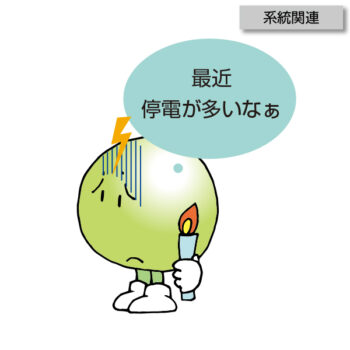 災害や何かのトラブルで停電が起きる様子のイメージイラスト。