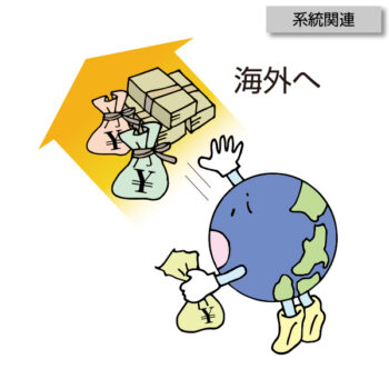 資源のない日本は化石燃料を海外から買うため、お金がどんどん流出していくイメージイラスト。
