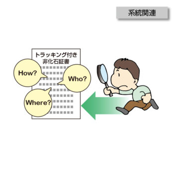どのように再生可能エネルギーが創られたか、などの属性情報を追うことができる非化石証書のイメージイラスト。