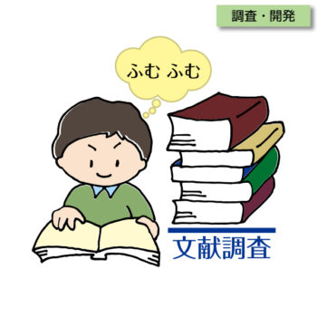 再エネ推進にあたり、敵地かどうかの判断をするために文献調査をしているイメージイラスト。