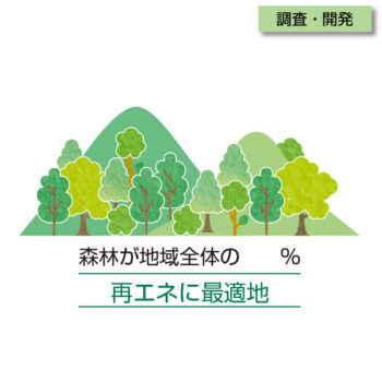 地域の中に風力発電など再エネに適した森林がどのくらいの割合を占めるのかを解説する際のイラスト。%の空欄にテキストボックスで数字を入れればよりオリジナル性の高いイラストになります。