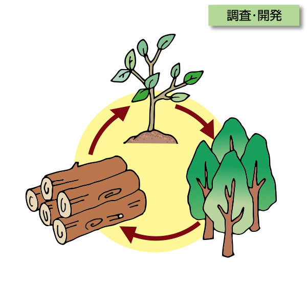 森林を管理し植樹して育てそしてまた使う循環をしっかり作る持続可能なサイクルを示す際に使う挿絵。