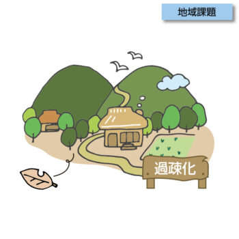 若者や働き手が都会へ出て行き、高齢化が進み、産業も無く地域も活気が薄れ、寂しい雰囲気のイメージイラスト。