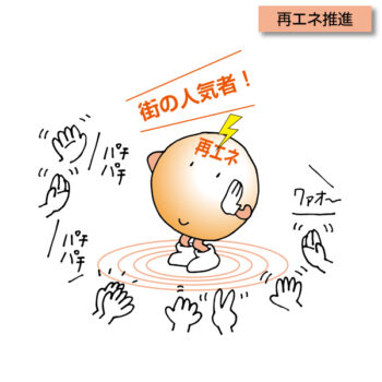 メリットの多い再生可能エネルギーを人気者に例えたイメージイラスト。