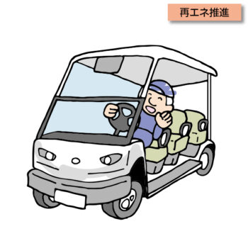 エコなグリーンスローモービルのイラスト。導入計画資料や地域のイベントチラシや資料に。