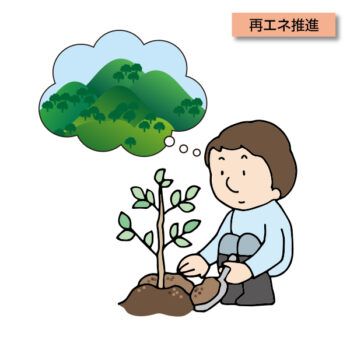 CO2を吸収する森林のために、植樹するイメージイラスト。