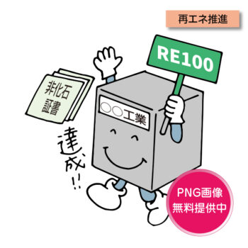 企業が環境に配慮し非化石証書を購入することでRE100を達成できるというイメージイラスト。