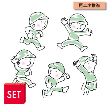 計画を進行していく経過をイラストで表現したイメージイラストの5点セット。台詞や吹き出しなどを追加するといろいろな場面で使えて便利。