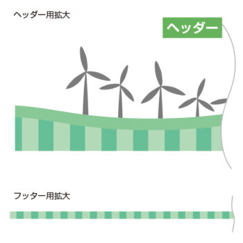 風力の再エネをモチーフにした緑豊かな広々とした丘をデザインしたヘッダー。