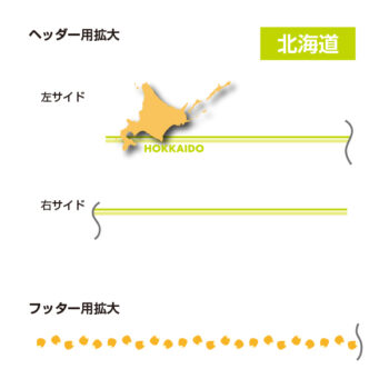 北海道をモチーフにしたトウモロコシの粒が可愛いヘッダー及びフッターデザイン。