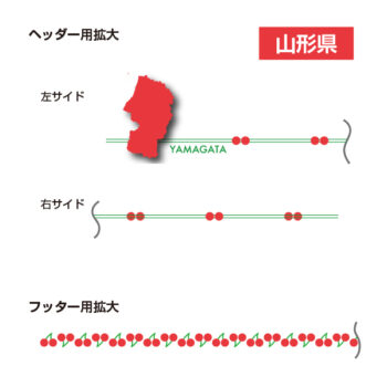 山形をモチーフにしたヘッダー及びフッターデザイン。サクランボのデザインが基調。