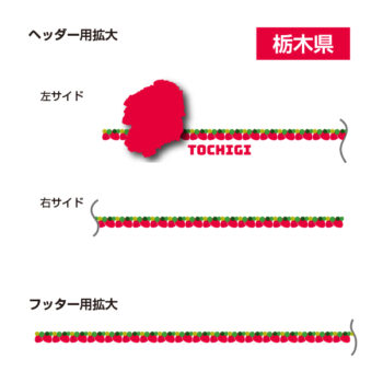 栃木をモチーフにしたヘッダー及びフッターデザイン。イチゴの形と色を基調にしたデザイン。