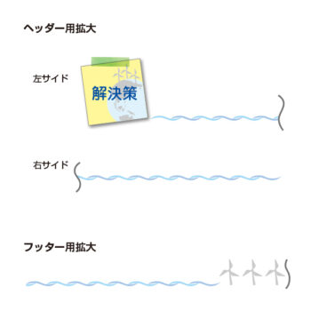 本文からの流れで、結論や解決策などを掲載できるデザイン罫線。風のウェーブと風力発電のデザイン。